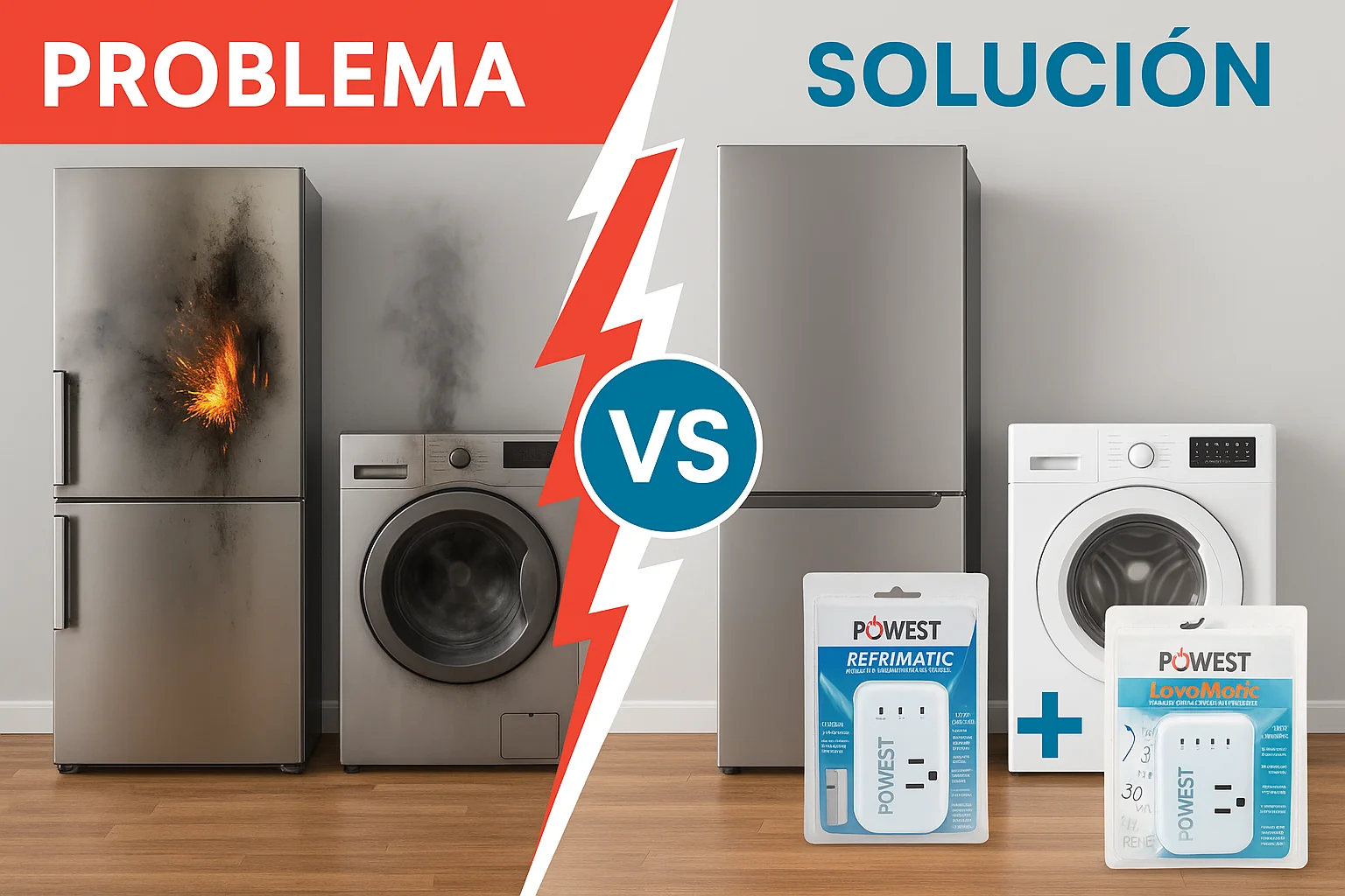 El Combo Protección Hogar Powest incluye dos protectores de voltaje inteligentes diseñados específicamente para los equipos que más se dañan en el hogar: